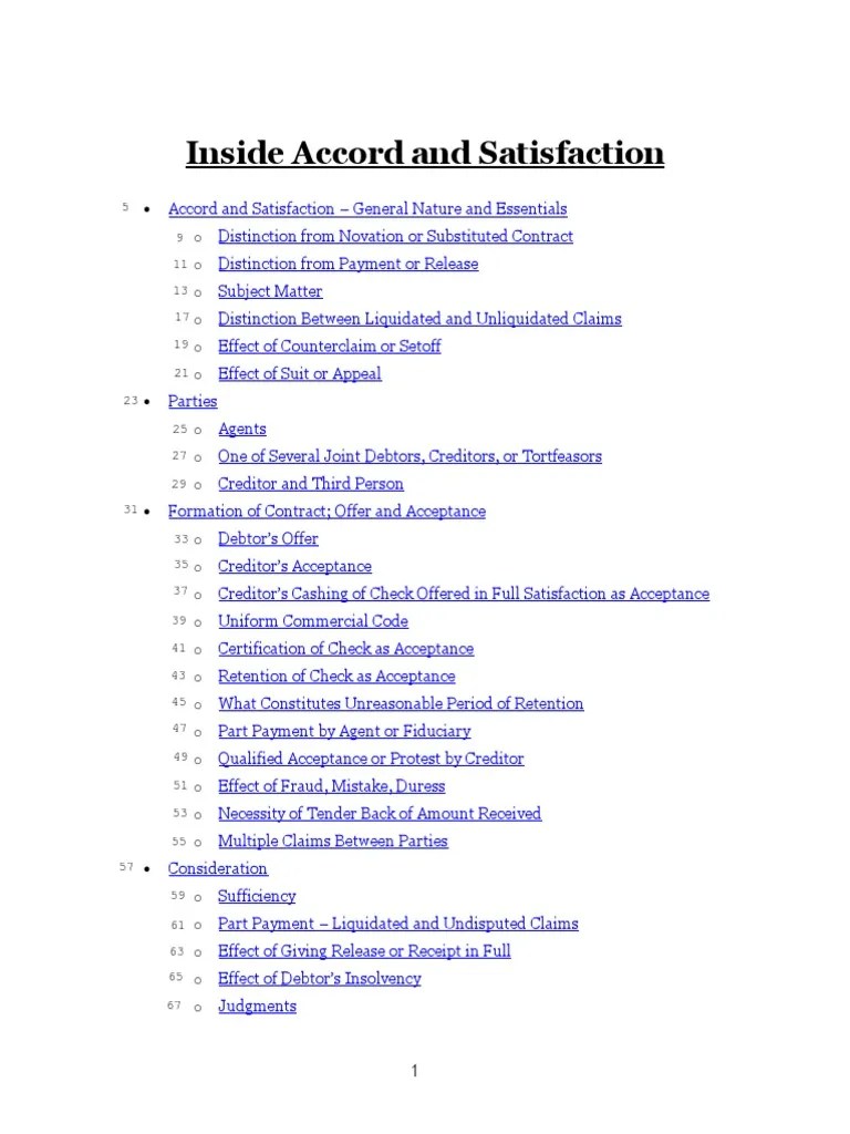 Web usually, accord and satisfaction deals with a debtor’s offer of payment and a creditor’s acceptance of a lesser amount than the creditor originally claimed to be owed. Web accord and satisfaction is a term in contract law that refers to the acceptance of some new form of compensation in place of the original obligation that was created by a..