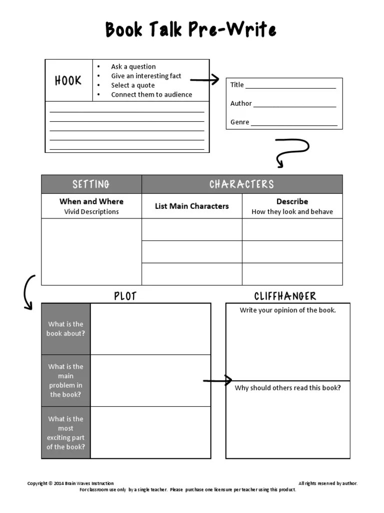 A book talk is a short presentation about a book with the goal of convincing other people to read it. Complete a book talk page that. Web what is a book talk? Be sure to know a lot about the book so that you can recommend it to a classmate. It’s not a formal book report or review.