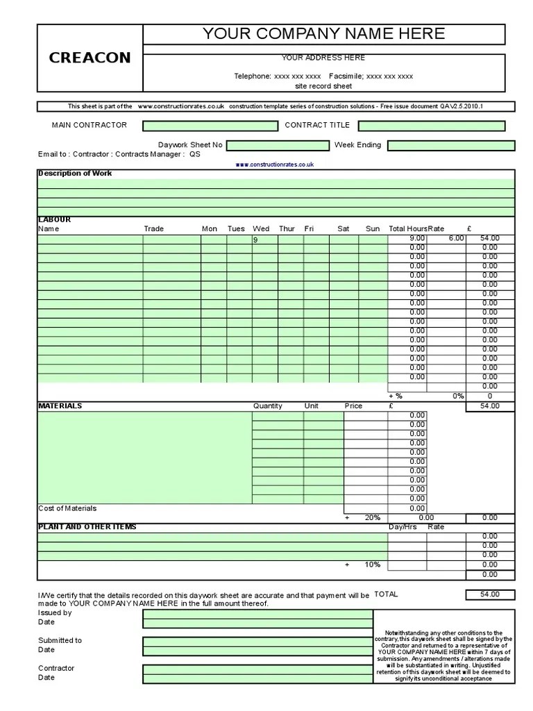 Web download now of 2 ~daywork sheet~ contract description: Web use the free dayworks sheet template and customise it to your needs or create it from scratch with the drag and drop form. Web daywork sheets can an essential item of getting paid for the work that you do. Web aforementioned free dayworks sheet template manufacturers completing and storing dayworks shelves better and more.