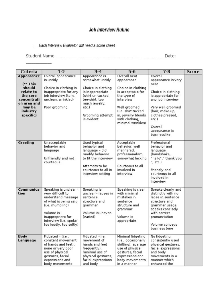 Student Interview Rubric Gesture Job Interview Free 30day Trial