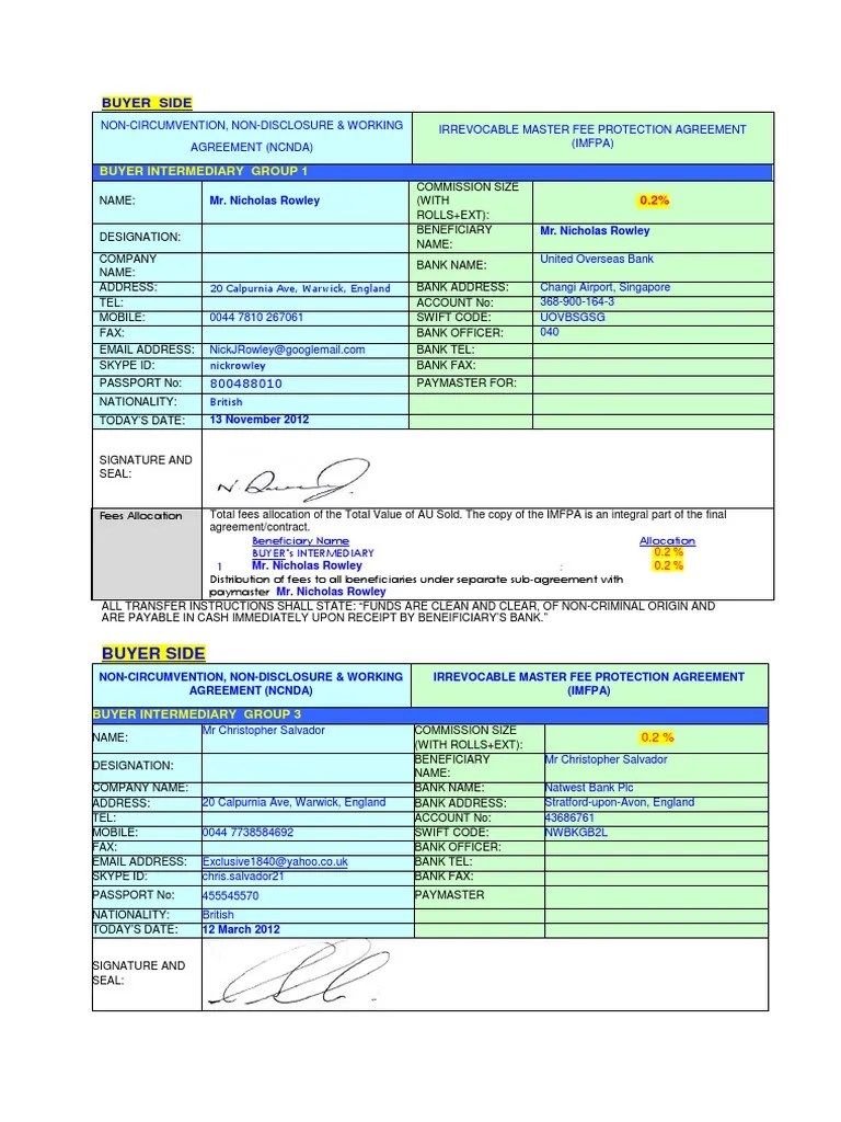 NCNDA+ IMFPA Arbitration Financial Transaction