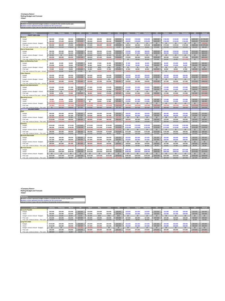 Rolling Budget and Forecast Template PDF Accounting Business